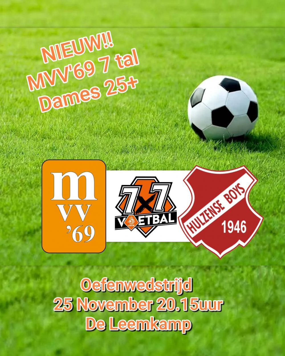 We hebben sinds dit seizoen ook een 7 X 7 Vrouwen 25+ team. Ze zijn voor volgend jaar ingeschreven voor de voorjaarscompetitie van de KNVB. Ze spelen 25 november hun eerste oefenwedstrijd tegen Hulzense Boys.